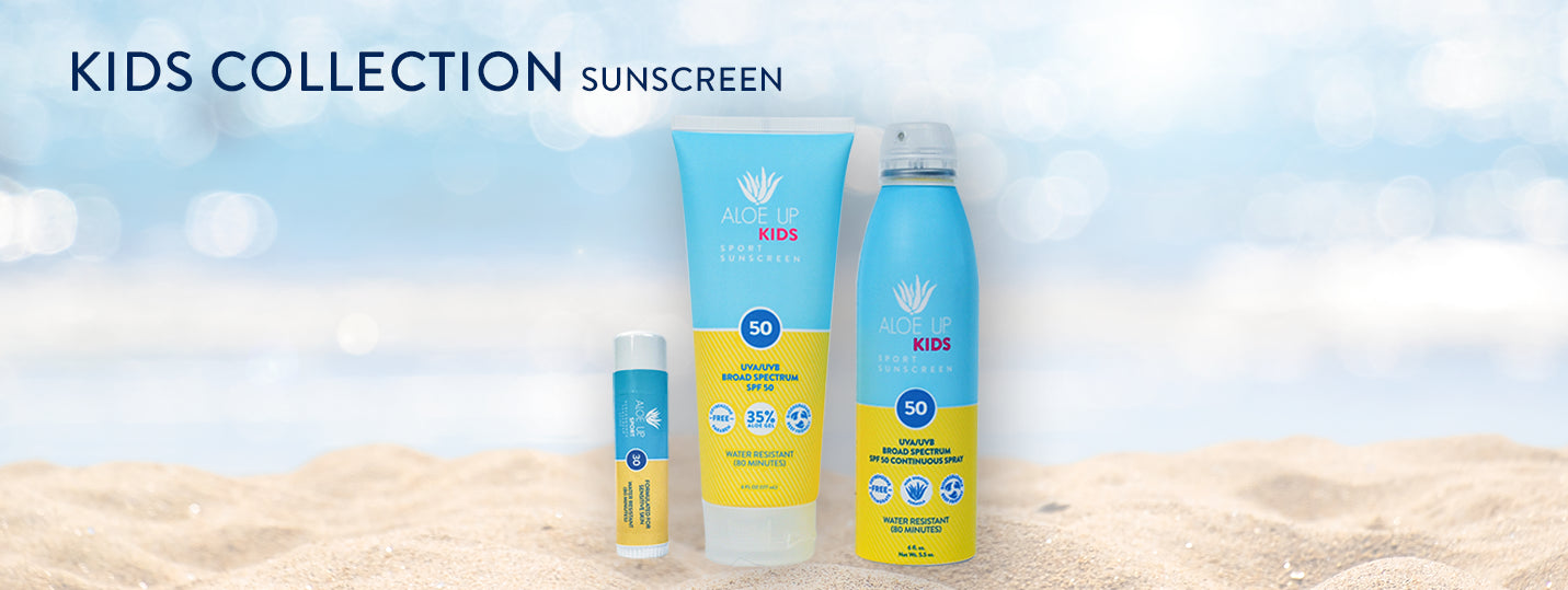 Aloe Up Sport Sunscreens and Kids Sunscreens are aloe vera based, non-greasy, fragrance free, water resistant and absorb quickly for a comfortable and light-weight feel. They are broad spectrum, certified biodegradable, ocean and reef safe sunscreens
